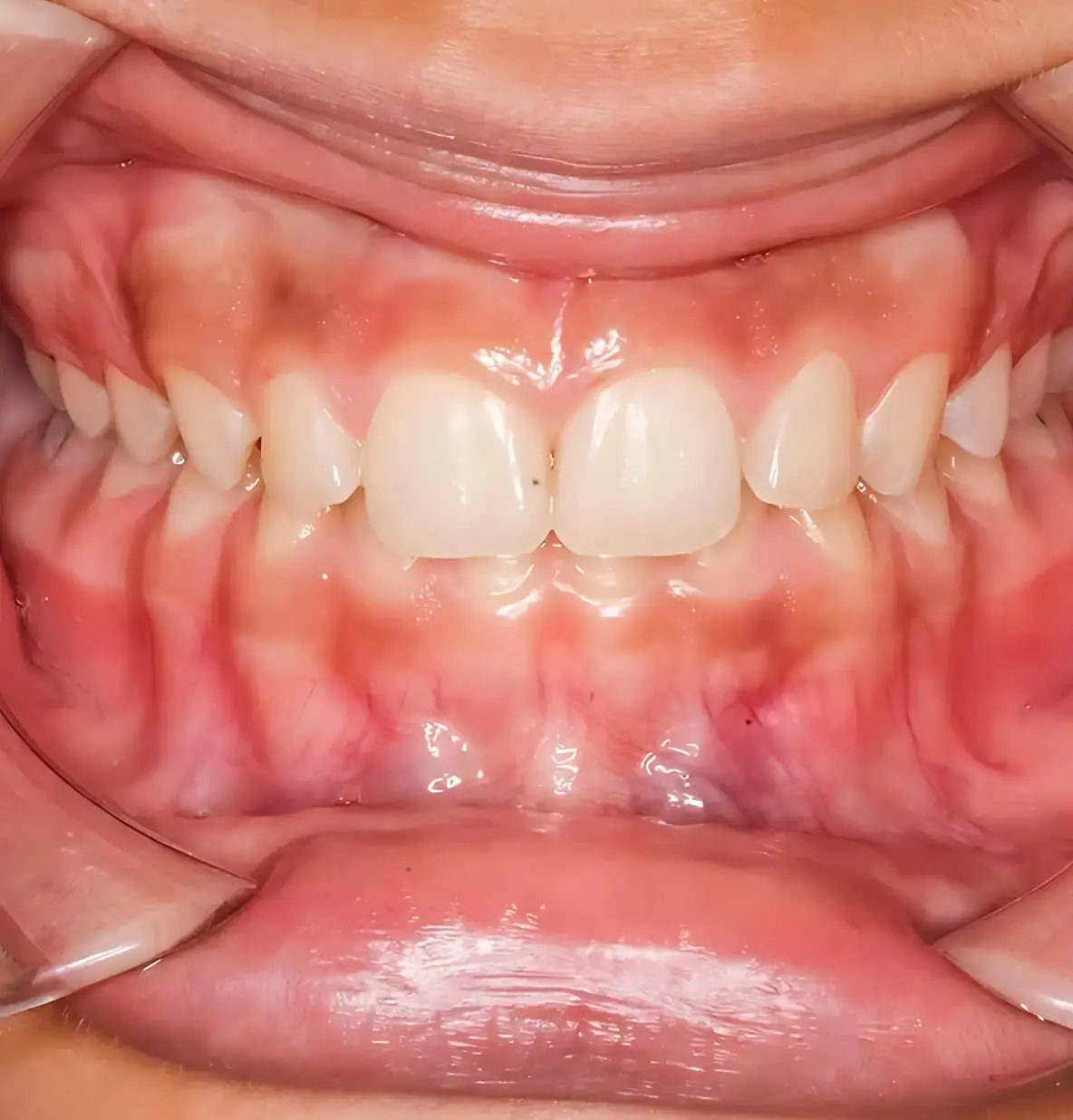 Глубокий прикус вызывает эстетический дефект — укорочение нижней трети лица, что придает лицу усталый и визуально старящий вид, делая подбородочную область менее выраженной и гармоничной.