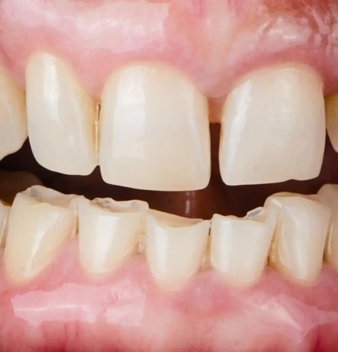 Стираемость эмали из-за неравномерной нагрузки на зубы возникает при неправильном распределении давления во время пережевывания пищи. Это приводит к быстрому износу отдельных участков поверхности зубов, вызывая повышенную чувствительность и косметический дефект.
